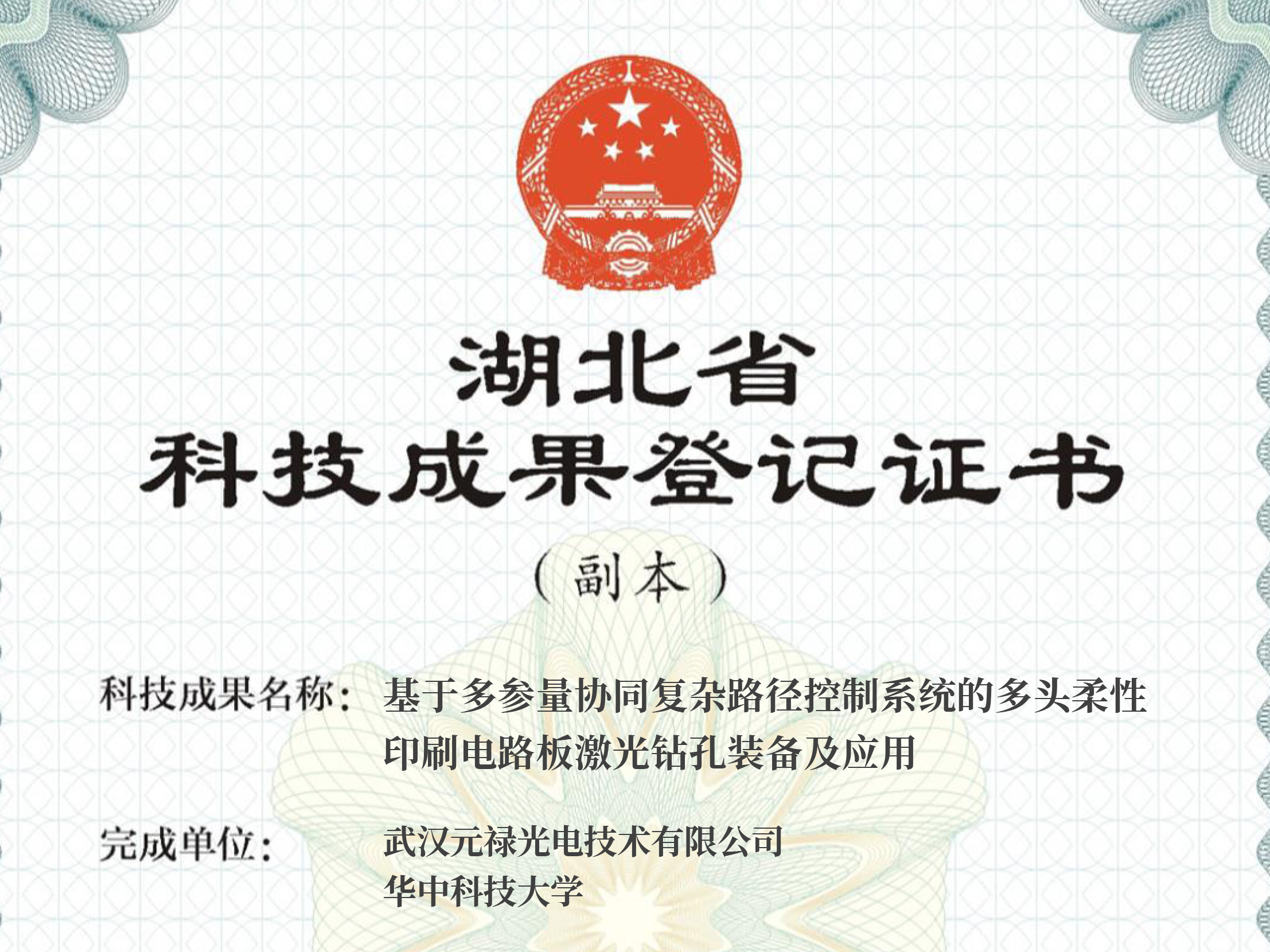 元祿光電科研成果榮獲省科技廳《科技成果登記證書》